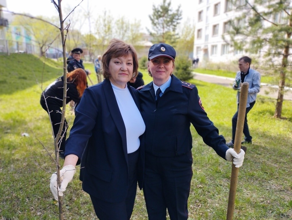 После участники акции высадили на территории Управления 20 саженце яблони. Таким образом бывшие и действующие полицейские, общественники выразили благодарность мирного поколения предкам, сохранив память об их подвиге, истории страны и истории каждой семьи.