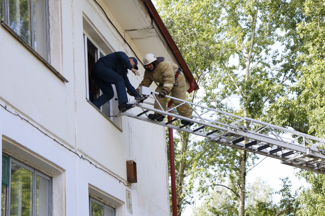 Требовалась помощь пострадавшим и застрявшим на втором этаже из-за дыма — такова легенда учений, которые прошли сегодня.