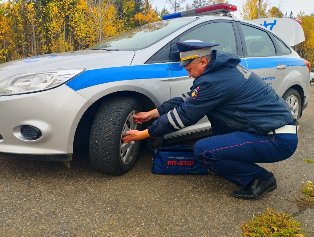 Госавтоинспекторы Железногорска напоминают автовладельцам о своевременной замене шин.