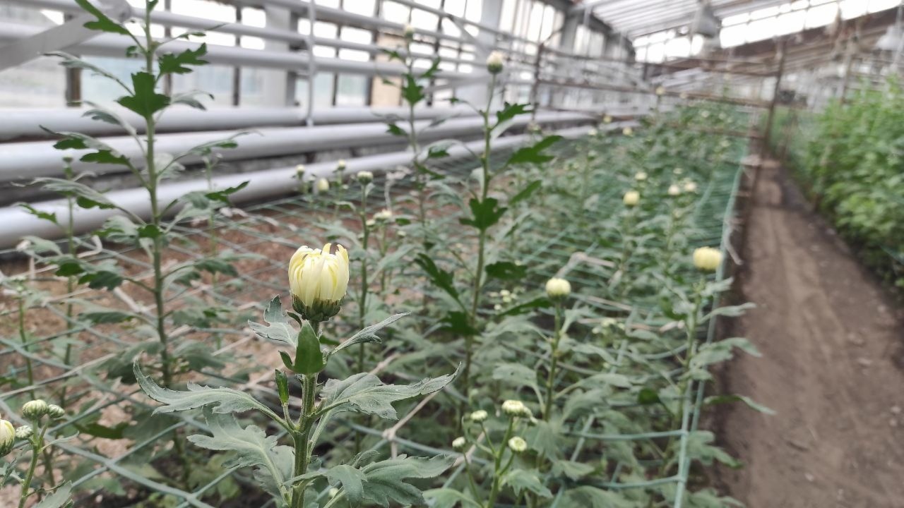 В теплицах зеленого хозяйства Комбината благоустройства работа не прекращается. В то время как на улицах города все больше желтой листвы и травы, в теплицах — зеленые луга и распускающиеся бутоны цветов.