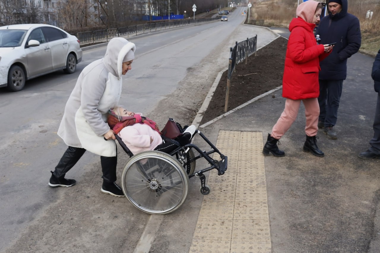 Так мама члена общественной палаты Ирины Корж 20 ноября рассказала о сложностях передвижения на инвалидной коляске по отремонтированной улице Саянской.