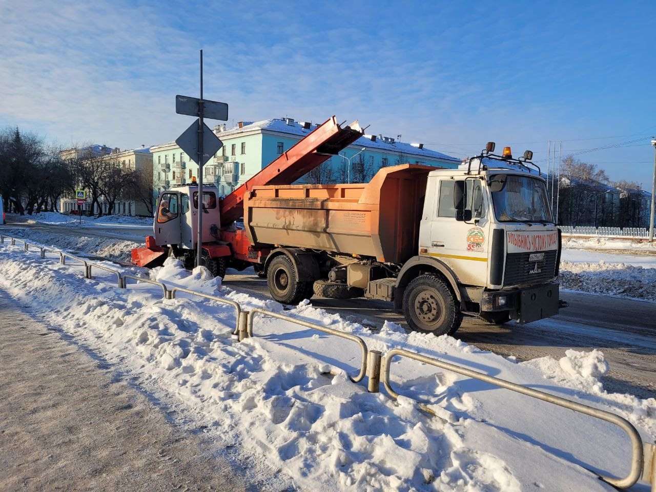 Сегодня снегоуборочная техника работала на Свердлова, (от 22 Партсъеда — до Андреева). Предполагается, что вывозить снег из города будут до апреля включительно. Сначала — с улиц с большим трафиком движения и там, где ходит общественный транспорт.