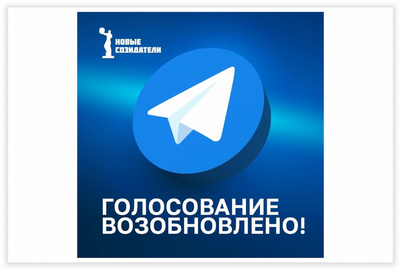 Голосование пройдёт с 09 октября 2024 года с 14:00 МСК до 23 октября 2024 года до 14:00 МСК в Telegram-боте «Новые Созидатели 2024».