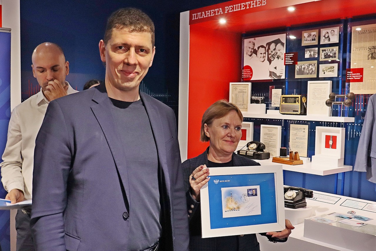 В городском музее состоялась торжественная церемония специального гашения марки и конверта штемпелем первого дня, выпущенные к 100-летию Решетнева.