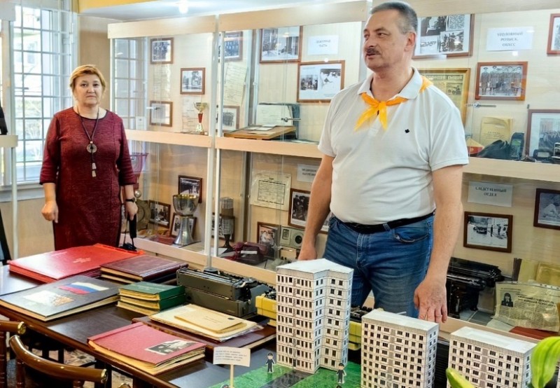 По завершению митинга в музее истории Межмуниципального управления ветеран ОВД Сергей Куст, который прослужил в полиции 25 лет, рассказал ребятам о трудовых буднях разных поколений стражей порядка.