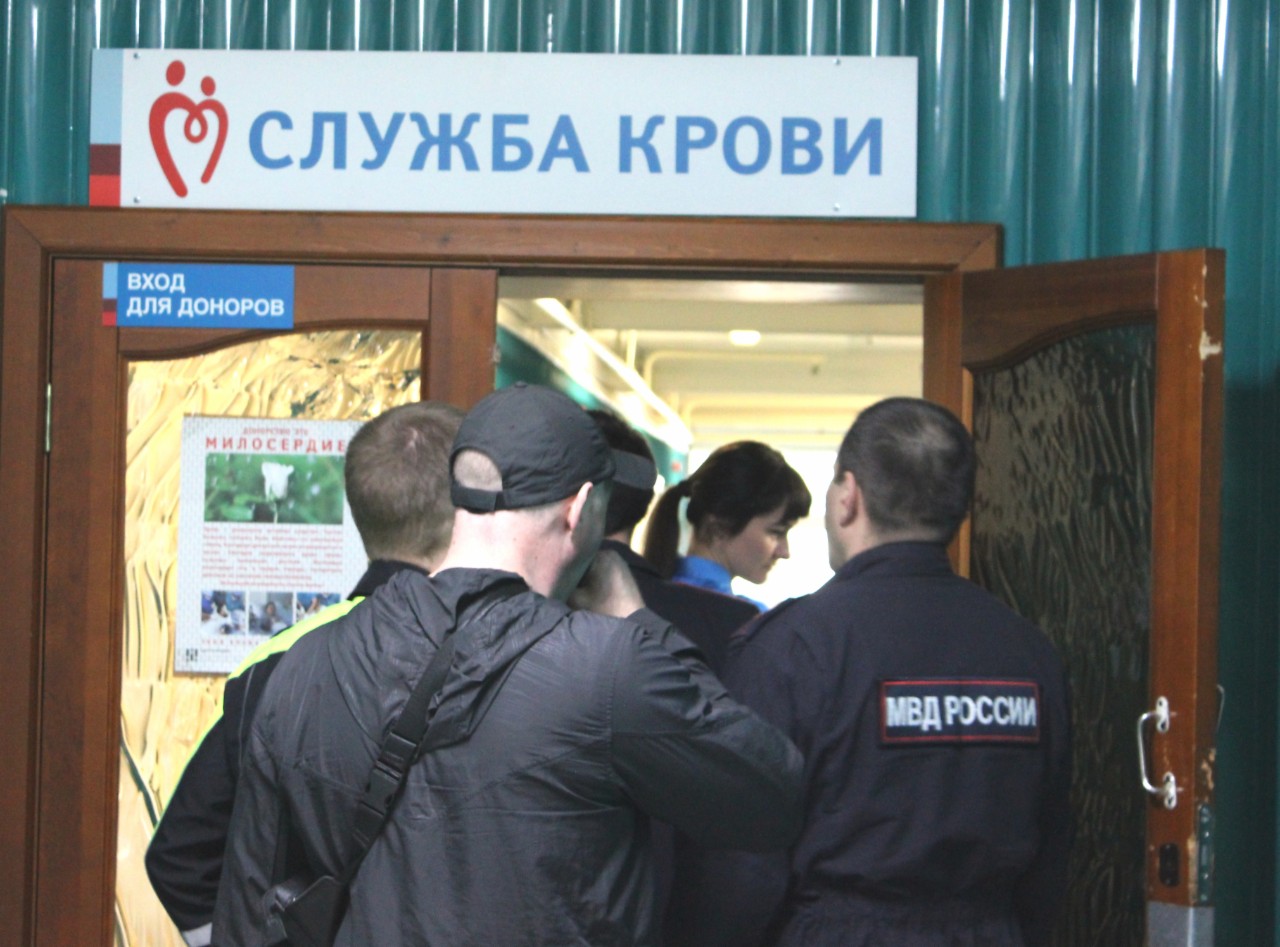 В этом году в честь юбилея Победы в Великой Отечественной войне ФМБА России инициировало проведение акции «Код донора. Защитники Отечества». Сотрудники МУ МВД России по ЗАТО г.Железногорск после встречи с врачом-трансфузиологом Клинической больницы № 51 не смогли остаться в стороне и решили внести свой вклад в пополнение жизненно важных ресурсов. Более 20 сотрудников различных подразделений полиции прошли процедуру донации крови, 7 стражей порядка вступили в Федеральный регистр доноров костного мозга.