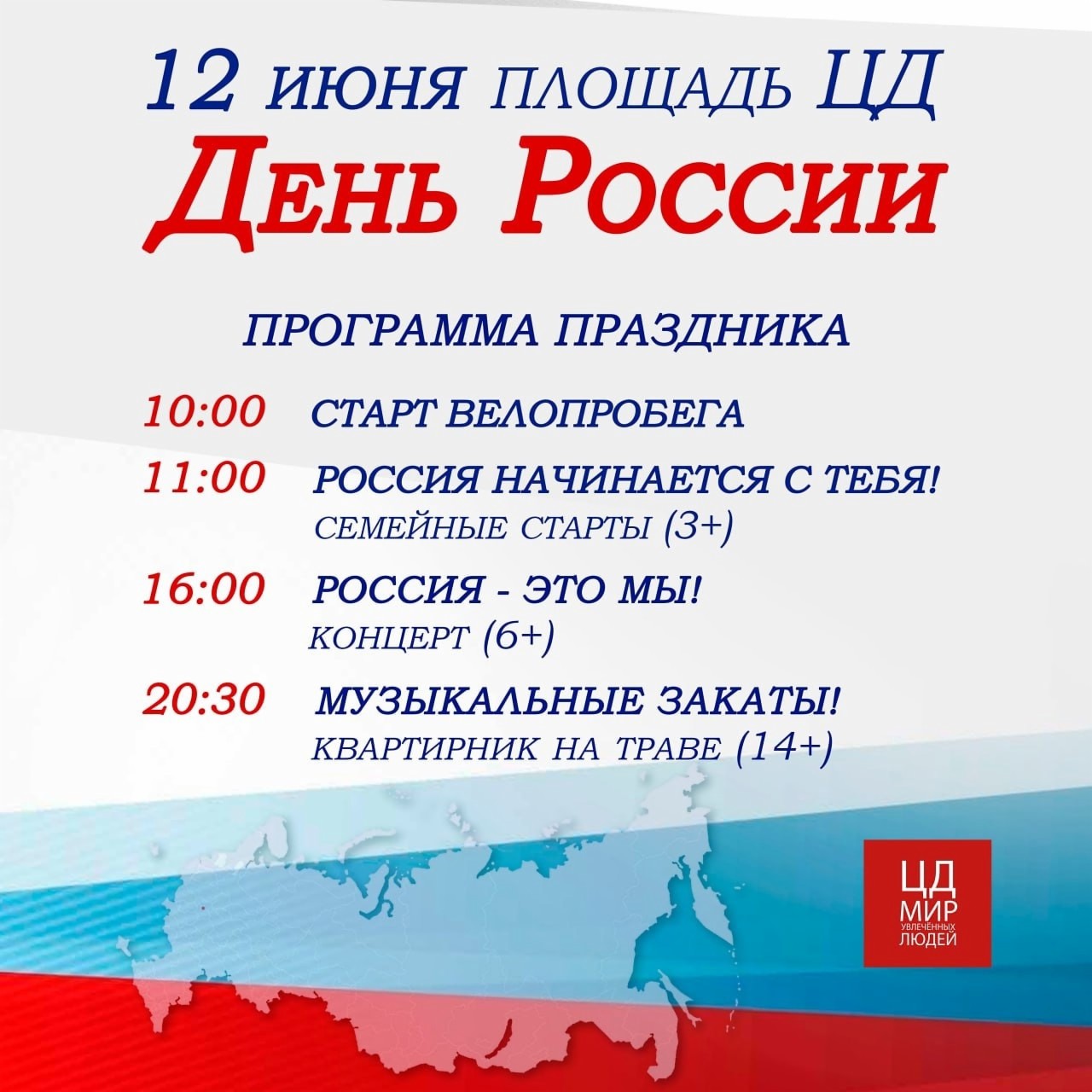 Друзья, приглашаем вас провести этот день в четверг 12 июня на площади Центра досуга: