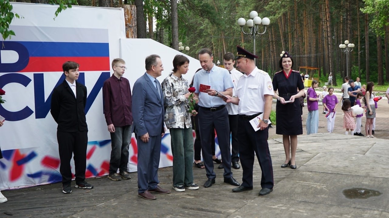 Церемония состоялась в парке у главного фонтана. Паспорт — главный документ гражданина — ребята получили из рук главы ЗАТО г. Железногорска Дмитрия Михайловича Чернятина и председателя Совета депутатов Сергея Дмитриевича Проскурнина. Вместе с паспортом каждому вручили фирменную обложку, экземпляр Конституции Российской Федерации и значок «Движения первых».