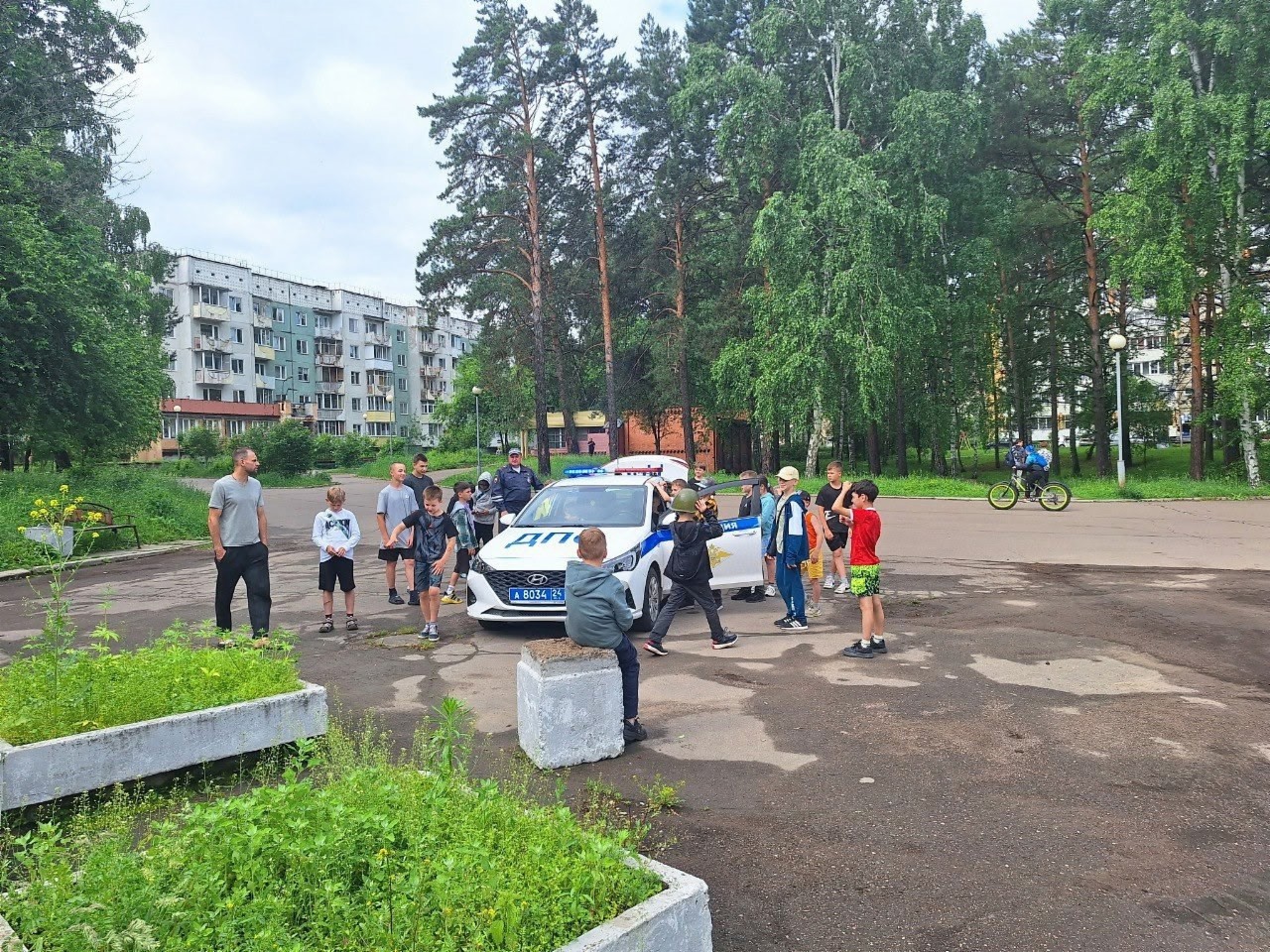 Дополнительным интересом для детей стало знакомство с патрульным автомобилем ДПС — инспекторы показали устройство служебной машины и рассказали о её возможностях.