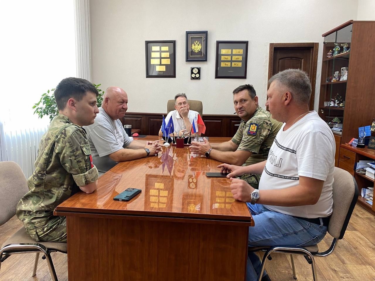 В ходе переговоров председатель Совета депутатов Сергей Дмитриевич Проскурнин и официальный представитель Союза ветеранов специальной военной операции в ЗАТО Железногорск Сергей Александрович Бурцев обсудили с гостями рабочие моменты и наметили дальнейшие планы развития Союза ветеранов специальной военной операции на территории ЗАТО.