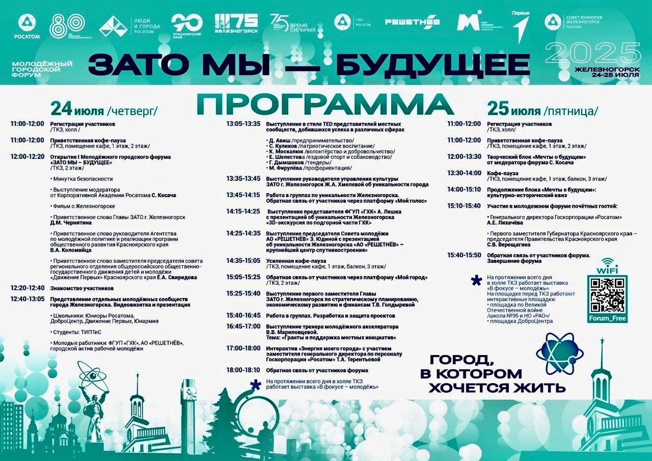 Мероприятие станет частью программы юбилеев 2025 года: 80-летия атомной промышленности, 75-летия Железногорска и Горно-химического комбината, оно задумано как консолидирующий момент в молодежной политике города, возможность объединиться вокруг центров притяжения и развития.