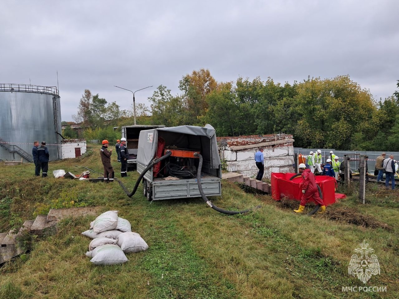 В Железногорске прошли учения пожарно-спасательных подразделений, организованные местной энергоснабжающей компанией. По легенде, на объекте произошло разрушение резервуара с розливом и возгоранием мазута.