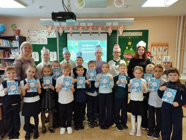 Школы N93 провела увлекательную новогоднюю викторину по ПДД для начинающих помощников из 1 «Б» класса.