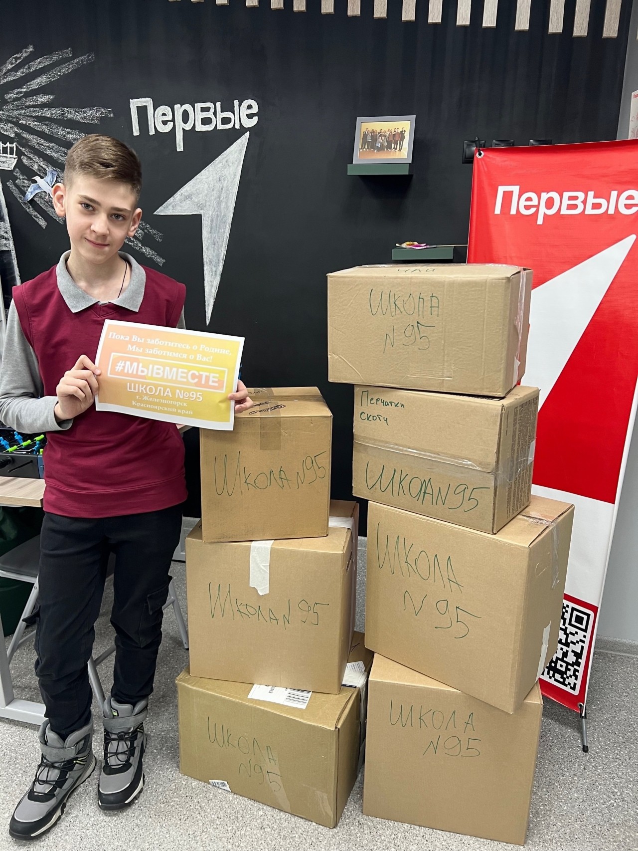 Учащиеся школы № 95 вместе с педагогами и родителями собрали гуманитарную помощь участникам специальной военной операции. Также школьники написали письма бойцам – ребята поделились теплыми воспоминаниями и выразили благодарность за их героизм и защиту нашей страны. Об этом рассказали в городском управлении образования.