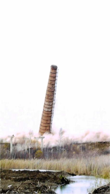 Взрывные работы были проведены вчера в 16 часов. Общая масса заряда шпуров составила 22 кг. Для взрыва вокруг дымовой трубы было подготовлено 87 отверстий. Опасная зона по разлету составляла 100 метров.