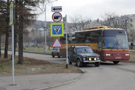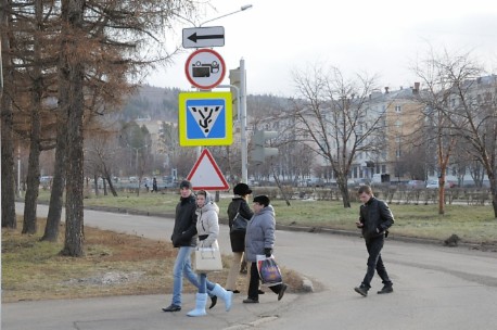 Судя по дорожным знакам, установленным здесь, и пешеходы, и автомобили преодолевать этот участок должны вверх тормашками.