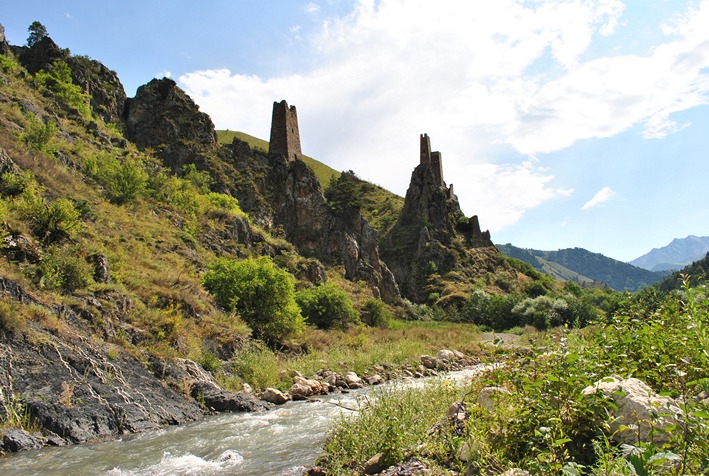 Ингушские башни уникальны по своей архитектуре. Строения чаще возводили на вершинах скал, чтобы огненными сигналами разные селения могли сообщать друг другу о появлении врагов.