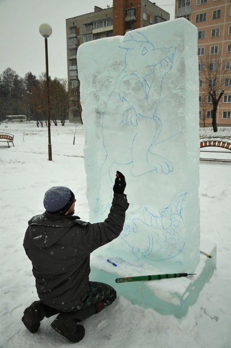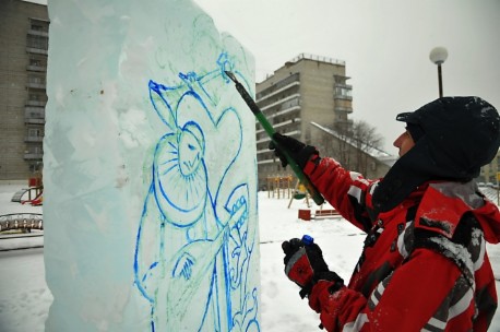 Сегодня на площади Королева появятся шесть ледяных скульптур. Художники уже приступили к работе. Тему композиций авторы выбрали самостоятельно.