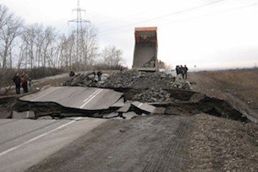 Во вторник на 849 километре автодороги М-53 «Байкал» в районе поселка Березовка разрушилась дорога. Как сообщают эксперты, это произошло из-за переувлажнения насыпи, вследствие чего дорожное покрытие провалилось по всей ширине проезжей части. Ширина разрушенного участка по предварительным данным составляет около 5 метров.