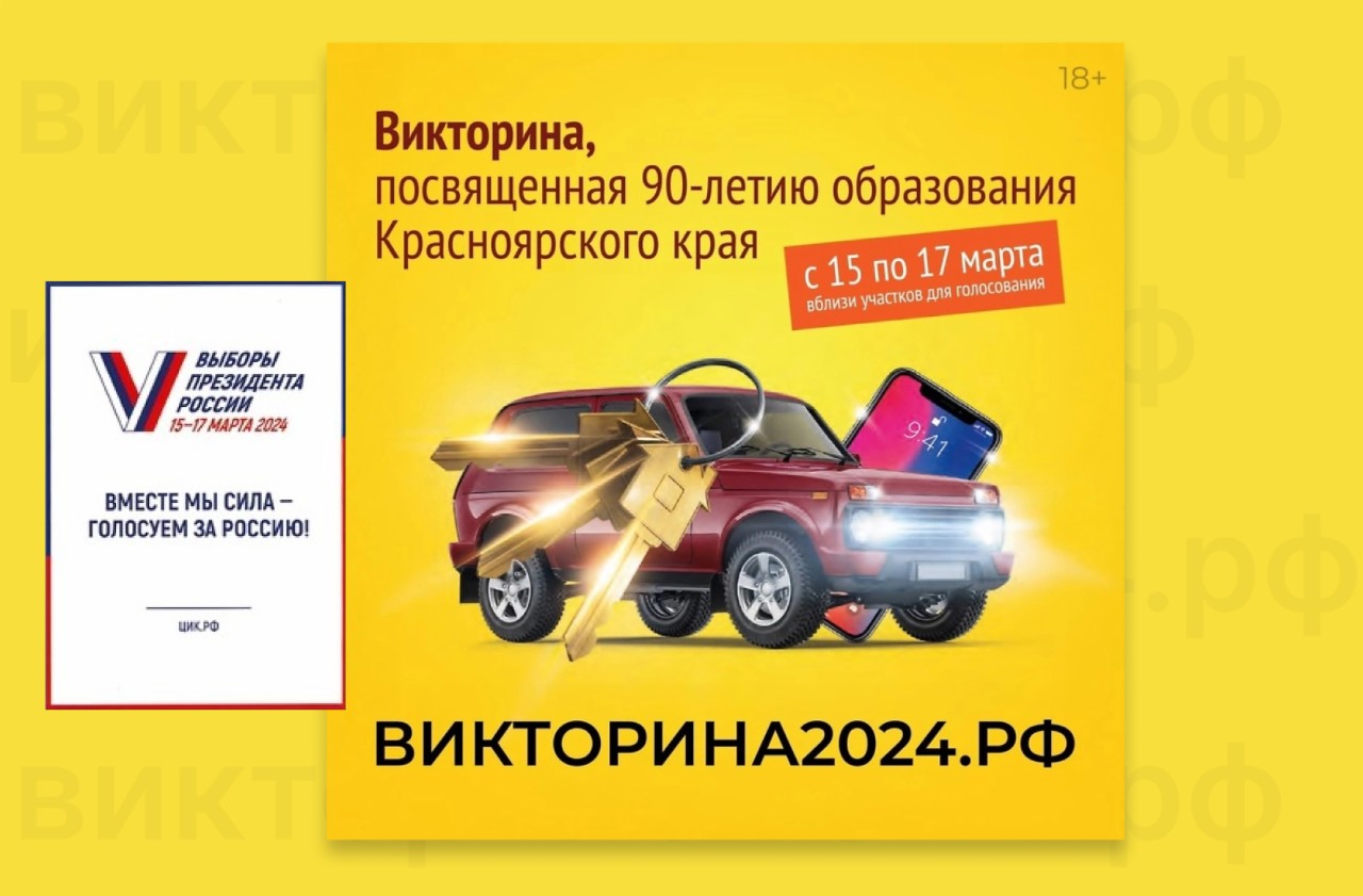 Жителей региона приглашают принять участие в викторине, посвящённой 90-летию образования Красноярского края.Получить купон для участия в викторине можно в Администрации ЗАТО в кабинетах 101 и 102. С 8:30 до 17:30. Обед с 12:30 до 13:30.