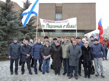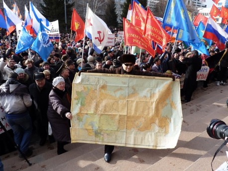 Накануне в Красноярске на площади перед БКЗ прошел митинг в поддержку крымчан и всех русскоговорящих, проживающих на территории Украины. Репортаж с красноярского митинга был показан в вечерних новостях на Первом канале.