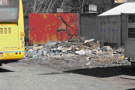 Это фотография конечной остановки маршрута №11 (Горавтотранс). Свалка образовалась с его появлением. Пока ходил маршрут №6 ПАТП, такого не было. Здесь останавливается автобус, и мы выходим на эту кучу мусора. С появлением киоска мусора стало в два раза больше.