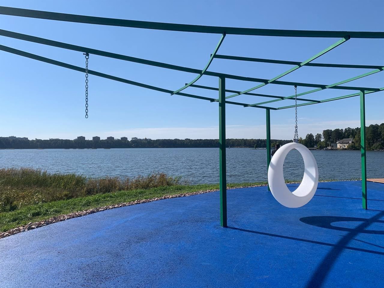 С новой площадки на берегу озера пропали качели.