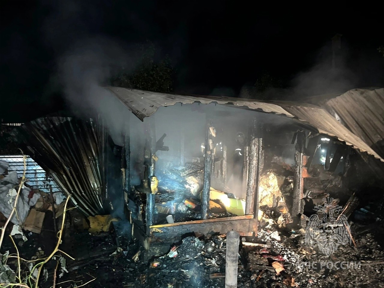 На место были направлены автоцистерны СПСЧ № 4 (ФПС № 2) и СПСЧ № 6 (ФПС № 57). На момент прибытия подразделений хозяйственная постройка была полностью охвачена огнем. Пострадавших нет. Время ликвидации пожара 00.04. В результате постройка полностью уничтожена, распространения огня не допущено.