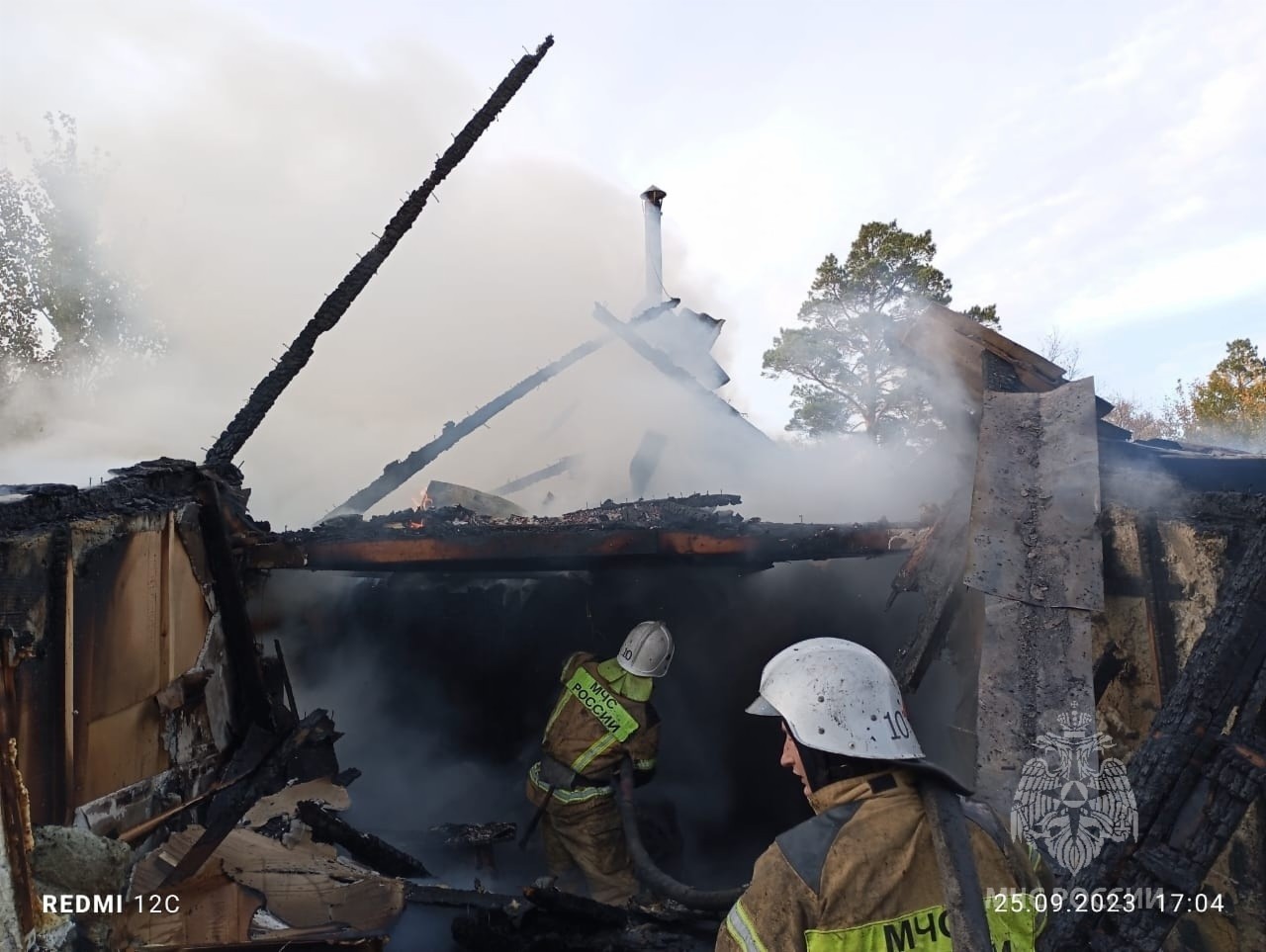 В результате уничтожен садовый дом. Распространение огня не допущено. Площадь пожара составила 50 кв.м. Предварительная причина возгорания - аварийный режим работы электропроводки.