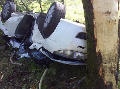 По информации очевидцев автомобиль подрезала другая иномарка, двигающаяся со стороны Южной. Пытясь избежать лобового столкновения, водитель «Рено» резко свернул в сторону и не справился с управлением. Машина слетела с дороги и перевернулась, срубив на своем пути несколько сосенок. Остановил ее только тополь, автомобиль буквально его обнял.