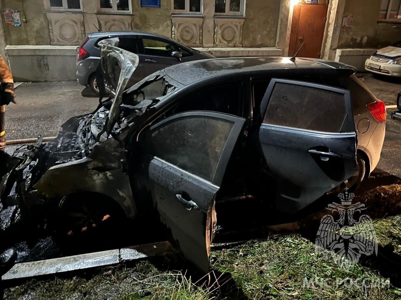 Сообщение о пожаре поступило в 02:19. Через две минуты на место прибыл дежурный караул. Огонь охватил площадь 2 квадратных метра, пострадал автомобиль Kia Rio, а также стоящий рядом Hyundai Tucson.