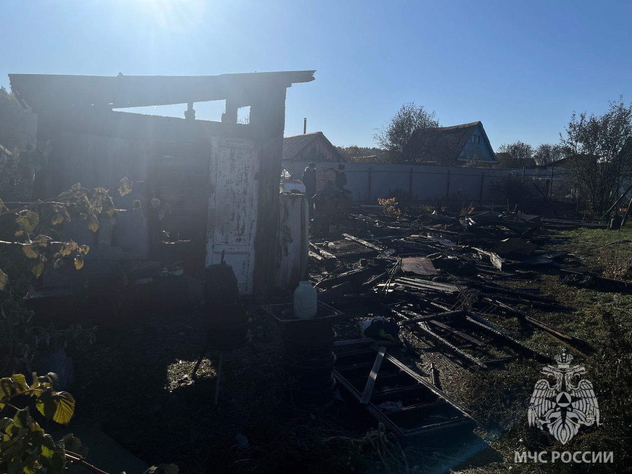 Пожар ликвидирован на площади 26 кв.м. садовый дом и постройка уничтожены огнем. Предварительная причина – неисправность печного отопления. Пострадавших людей нет.