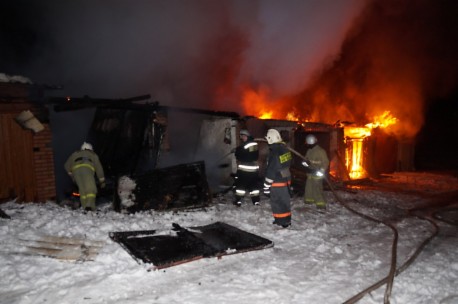 С огнем боролись больше часа 30 человек и несколько единиц спецтехники. В результате от 14 гаражей остались лишь стены, у двух помещений повреждена кровля, серьезно пострадал ВАЗ-2113.