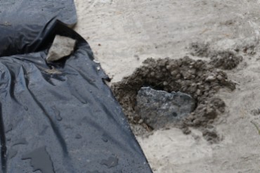 В минувшие выходные на строительной площадке будущего «Нейтрино парка» неизвестные закидали камнями свежий бетон, который должен стать фундаментом для новой смотровой.