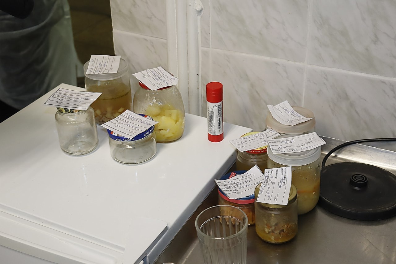 Вместе с сотрудниками прокуратуры в школу № 101 приехали специалисты МРУ № 51 ФМБА и Центра гигиены и эпидемиологии. Они тщательно обследовали все помещения, посмотрели ветеринарные справки на продукты животного происхождения, условия хранения пищи и отобрали суточные пробы готовой пищи. А также взяли смывы с поверхностей, мебели, посуды и рук сотрудников.