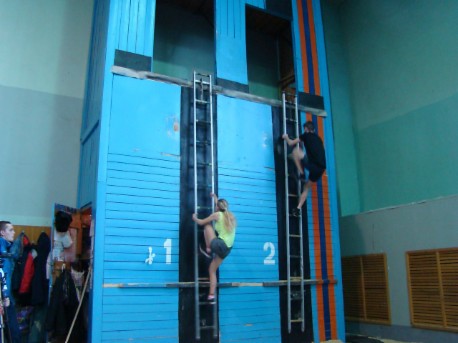 120 школьников и курсантов кадетского корпуса соревновались в скорости подъема по штурмовой лестнице в окно учебной башни.