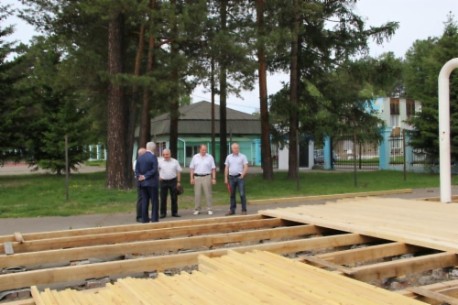 Площадку ремонтирует местный подрядчик - ООО «Виктория». Её восстановят в прежнем виде, но с применением современных защитных средств обработки древесины от гниения, с гарантией на много лет. Основание делают из лиственницы, а настил – из сосны. Сверху древесину покроют специальной резиновой краской: она эластичная, износостойкая и устойчивая ко всем движениям основания.