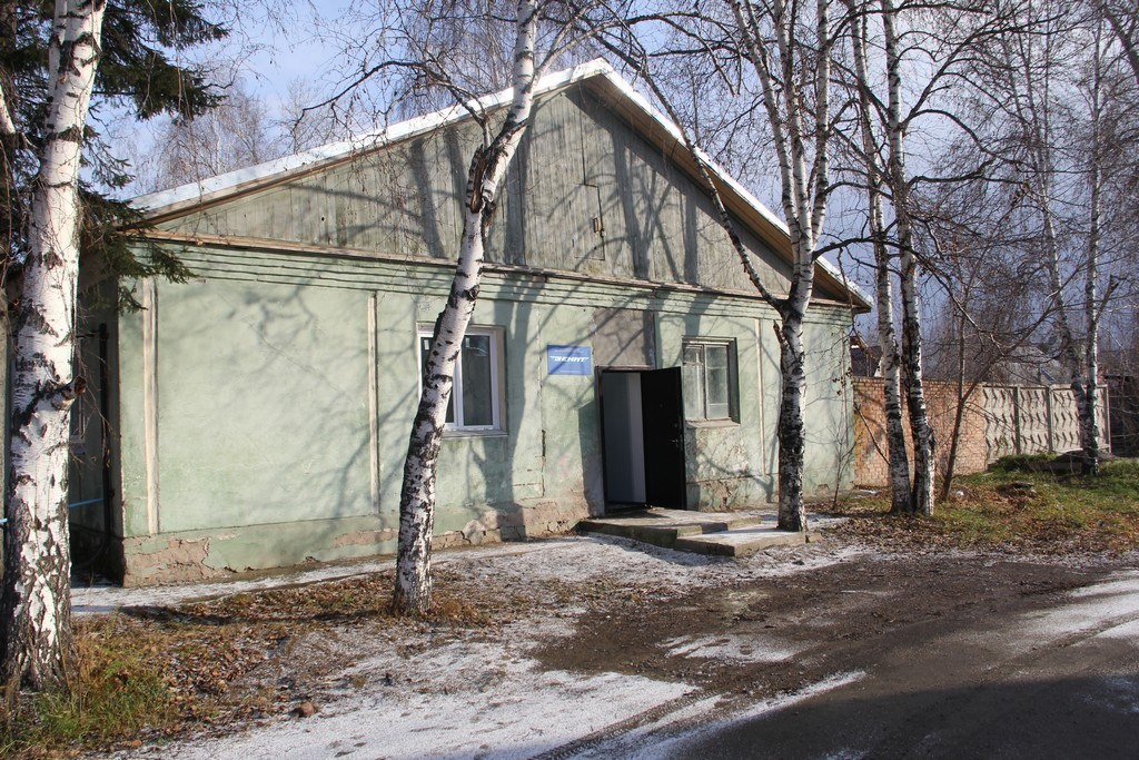 Здание было построено в 50-е, когда-то там была казарма, потом ЖЭК, а затем разместился спортивный клуб, где занимаются футболисты и хоккеисты.