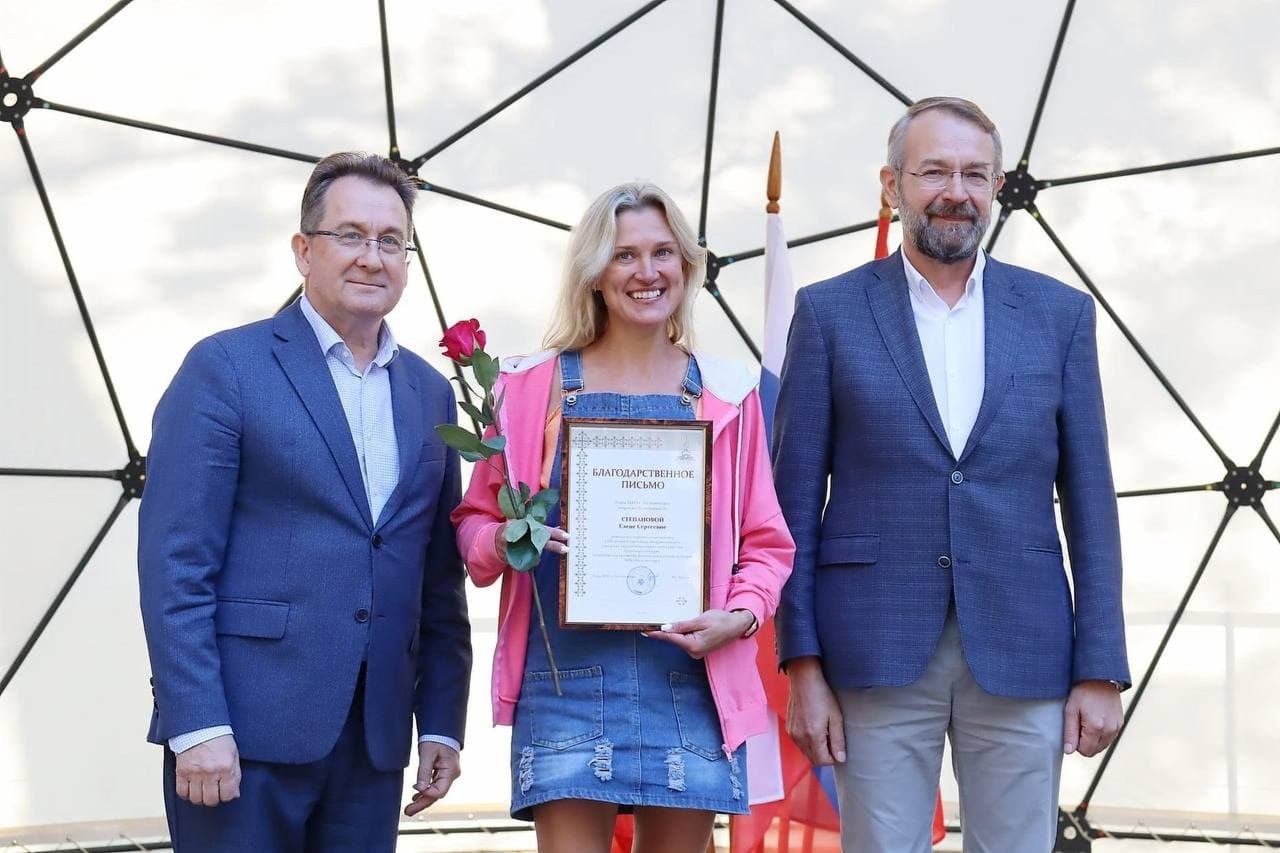 Сегодня в городском парке на площадке «Собольки» Глава ЗАТО Игорь Куксин и председатель Совета депутатов Сергей Проскурнин поздравили спортсменов с победой, поблагодарили за высокие результаты и вручили ветеранам спорта благодарственные письма.
