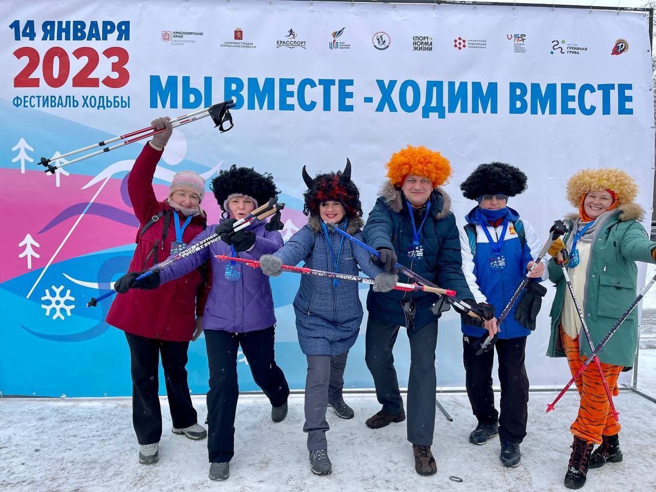 Сегодня в Красноярске прошёл первый в этом году зимний фестиваль ходьбы «Мы вместе — ходим вместе!»