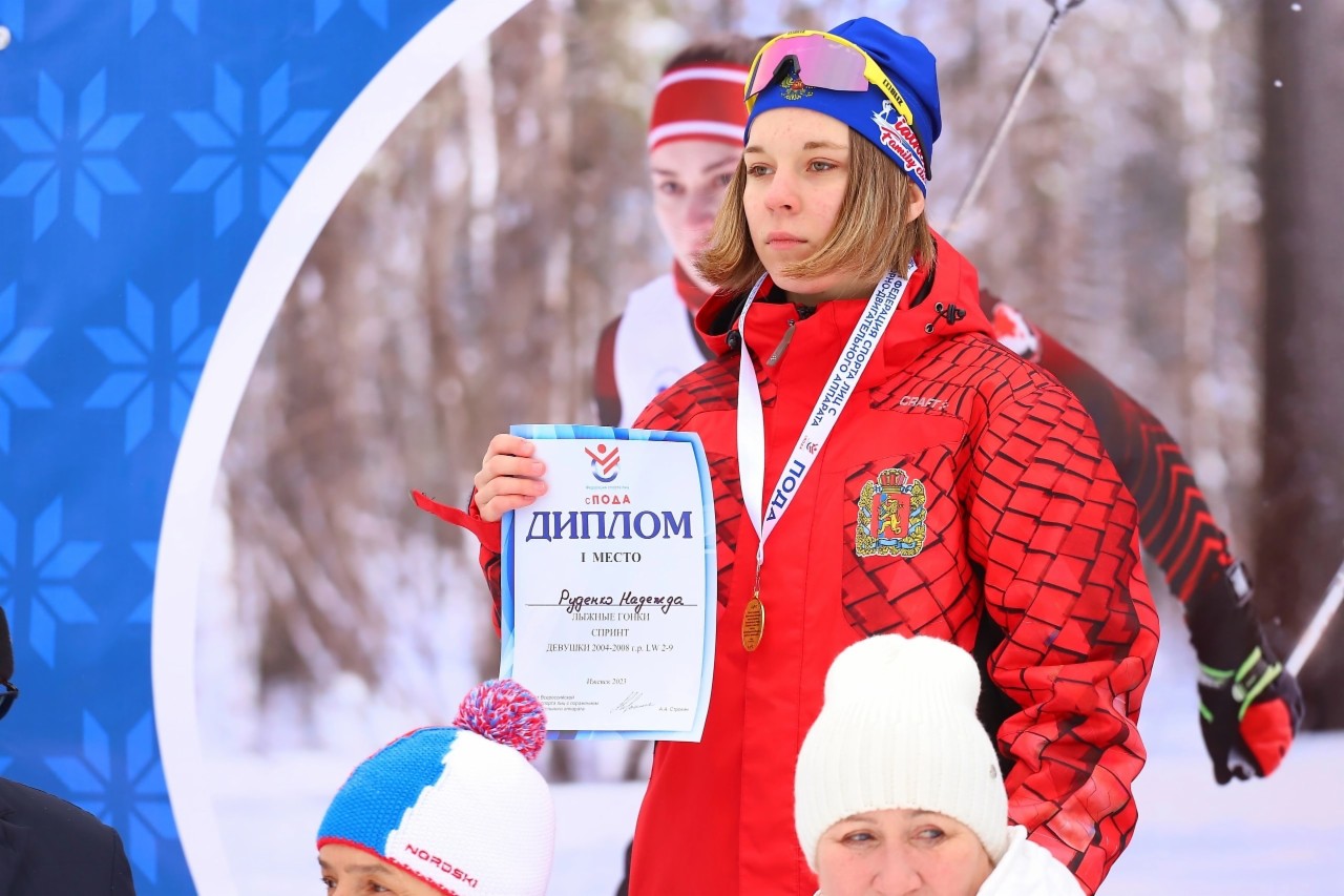 Железногорка Надежда Руденко блестяще выступила на Всероссийских соревнованиях по лыжным гонкам и биатлону среди лиц с поражением опорно-двигательного апппарата в Ижевске с 7 по 11 марта. В своей категории "Девушки LW 2-9 2004-2008 г.р." у Надежды: