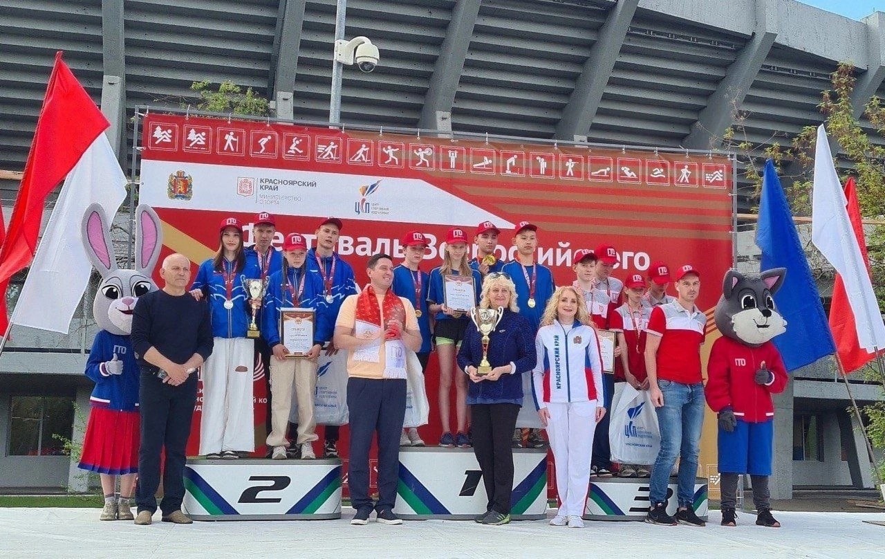 Сборная Железногорска второй год подряд поднялась на высшую ступень пьедестала почета регионального этапа фестиваля всероссийского физкультурно-спортивного комплекса «Готов к труду и обороне» среди обучающихся. Наши спортсмены сумели обойти большое количество конкурентов: в этом году свои команды на фестиваль командировали 54 города и района края.