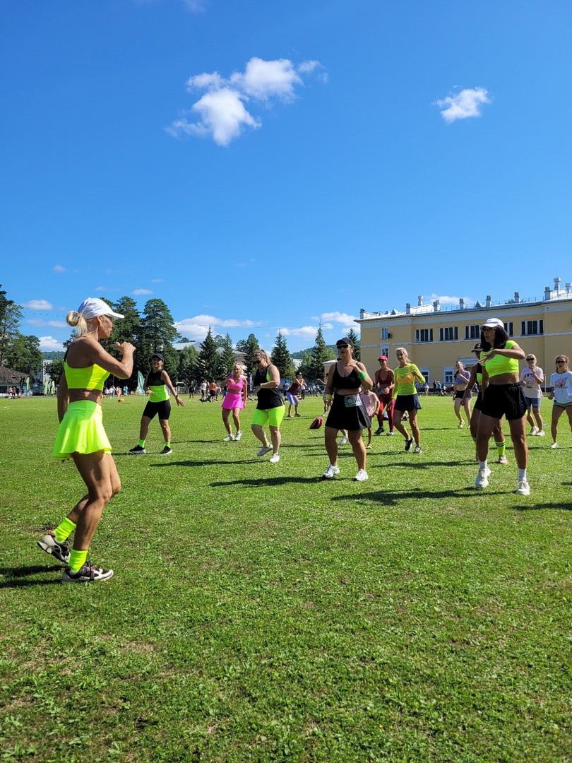 Любой желающий мог почувствовать себя йогом и постоять на гвоздях, попробовать сделать бёрпи (элемент кроссфит) или поучаствовать в занятии по фитнесу, северной ходьбе, джампингу и гиревому спорту. А деткам предлагали присоединиться к подвижным и настольным играм.