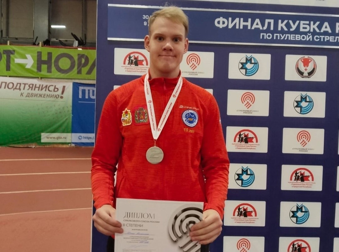 Стрелок красноярской Академии биатлона Никита Манн в упражнении «Пистолет малокалиберный, стандартный, 25 метров» завоевал серебряную медаль.