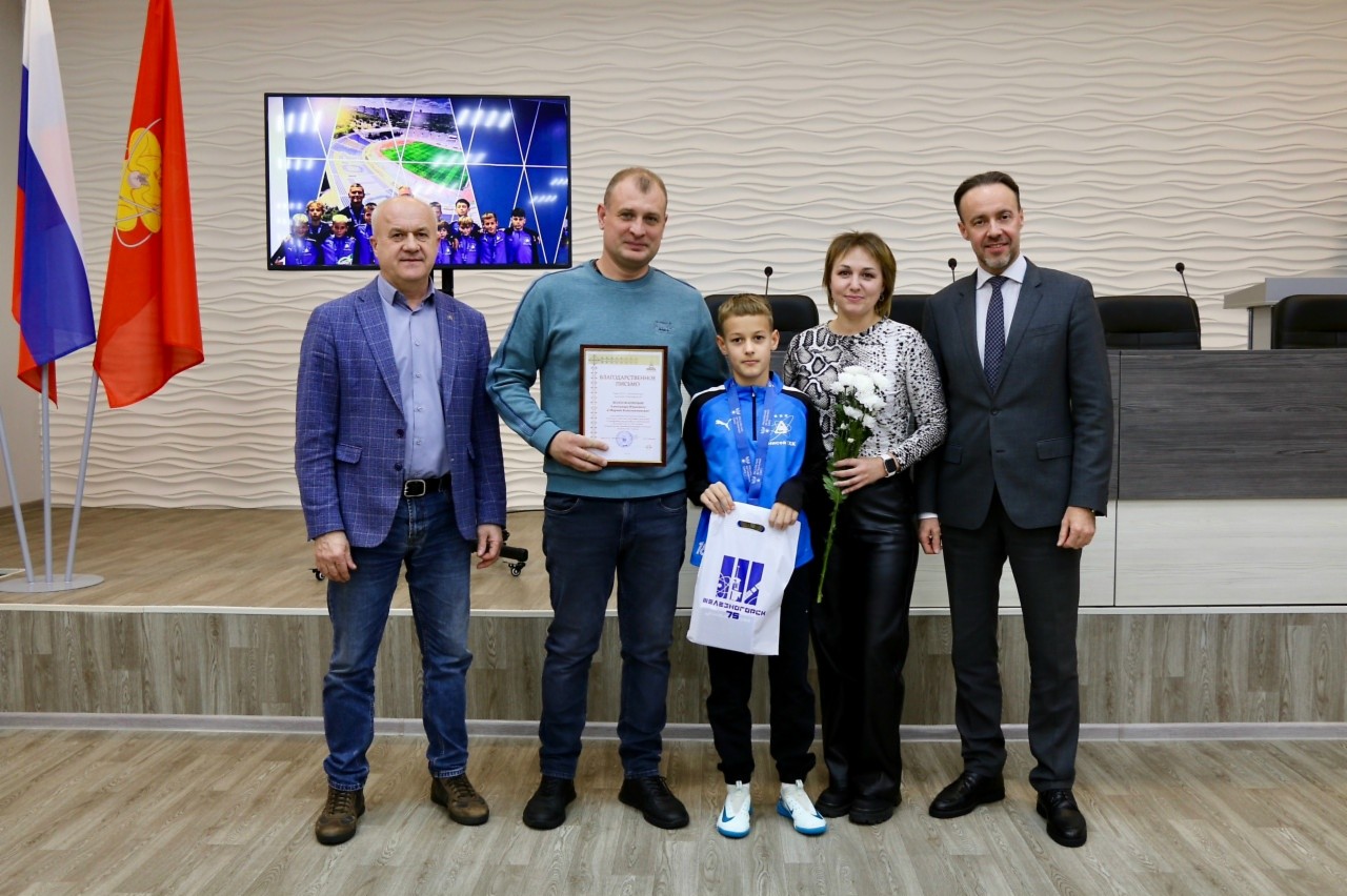 Сегодня в администрации ЗАТО г. Железногорск прошло торжественное награждение родителей игроков команды «Енисей ГХК–Смена» 2014 г.р., одержавшей выдающуюся победу на Всероссийском Суперфинале «Кожаный мяч – Лига юных футболистов» 2025 года.