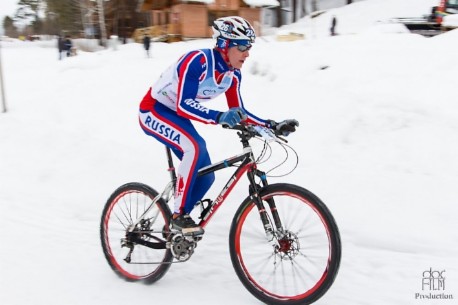 - Уже после первого поворота стало понятно, что совсем скоро под ногами будет снежная каша. Устал очень сильно, но времени передохнуть не было: шлем, велосипед - и на старт велоэтапа! 2 круга по 3 км. Здесь пошло все более-менее гладко, удалось даже немного перевести дух, только вот беда в том, что последние 500 м круга проходили по тому месту, где мы бежали. Велосипед не ехал в гору, а на втором круге даже и с горы, так и катил его рядом до транзитки.