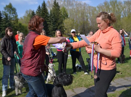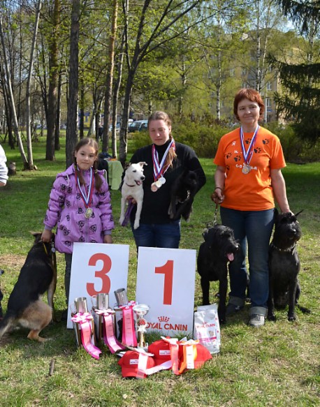 III место – команда «Чемпионы» - Анна Кутянина и ризен Рэс (Железногорск), Полина Суворова и шелти Тор (Железногорск), Екатерина Киселева и парсон терьер Байк.