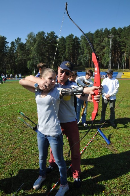 Секрет-совет оказался дельным в том смысле, что без удачи на спартакиаде и вправду делать было нечего. Вот что, к примеру, мог придумать баскетболист Дмитрий Гурылев, если с такой длиной рук ему был мал любой лук? Стрелять с согнутой руки? Мимо! Приходится в родном виде выбивать максимум. С луком, кстати, в этом году вообще забавно получилось. На одной из мишеней третья стрела отлетала от бумаги, как от брони танка. До тех пор, пока не заменили собственно лук, мишень была почти чистая. Зато после его замены стрелы из щита приходилось вынимать вдвоем! В любом случае борьба в каждом виде велась за каждое очко.