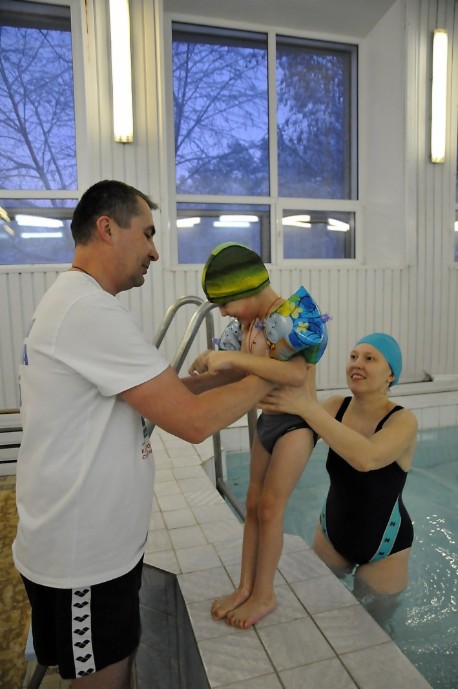 Сейчас в группы семейного плавания постоянно ходят восемь детей - это малыши с ДЦП или аномалиями в развитии конечностей. Ограничений по заболеваниям нет, главное условие - отсутствие медицинских противопоказаний. Родители обязательно должны присутствовать на занятиях и помогать ребенку в воде, пока тренер находится на бортике. Начинается каждый урок с 15-минутной разминки. Перед тем как окунуться в воду, ребенок пробует выполнить необходимые движения в сухом бассейне с шариками. В малой чаше «Дельфина» поддерживаются вполне тепличные условия - температура воды 32 градуса, а воздуха - 31. Малыши ни в коем случае не должны мерзнуть - от холода у них могут начаться мышечные судороги.