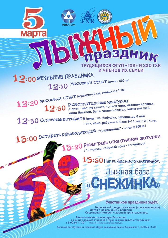 5 марта ГХК приглашает работников предприятия и его «дочек» принять участие в лыжном празднике.Старты лыжников традиционно пройдут на лыжной базе «Снежинка».